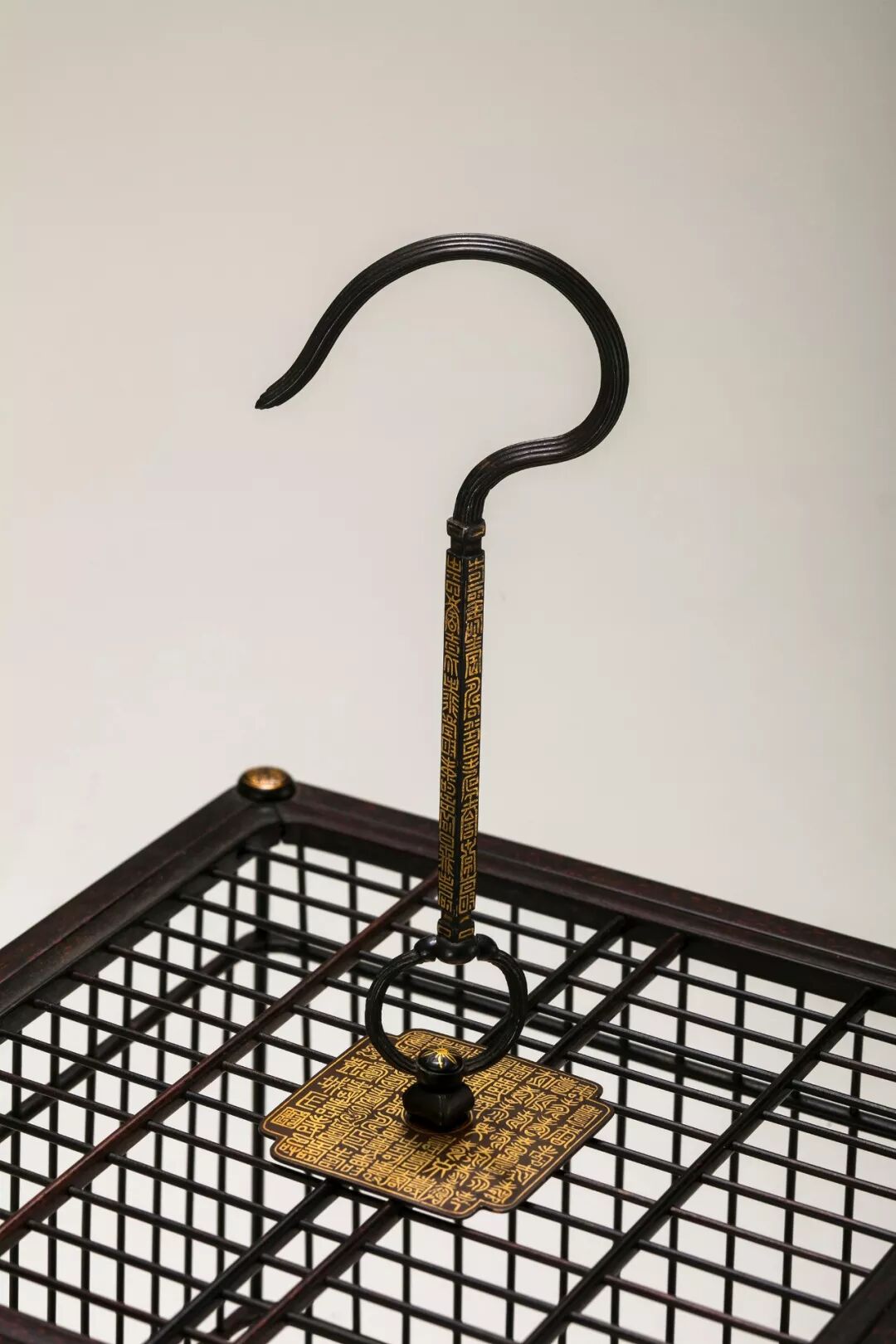 近 金三畏制 紫檀嵌金鸟笼 附金三畏制铜嵌金笼钩