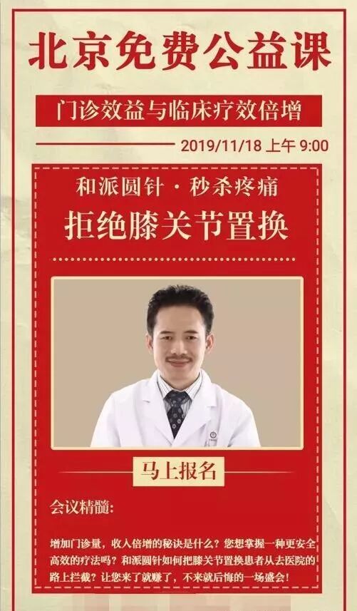 免费公益讲座【11月18日北京】和派圆针:拒绝关节置换,把患者拦截在去医院手术的路上!