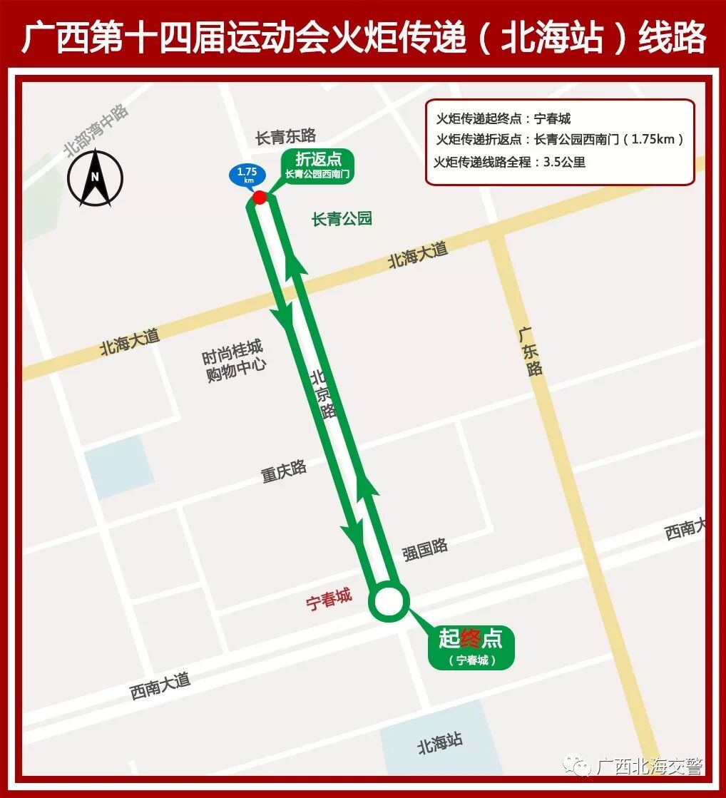 07 火炬传递活动:宁春城【起点】-北京路—长青公园折返点【折返】-北京路—宁春城【终点】