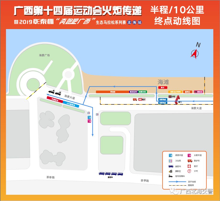 05 10公里健康跑:宁春城【起点】-北京路-北部湾中路-广东路-茶亭路-海景广场—海景大道—海景大道折返点【折返】—海景大道-海景广场【终点】