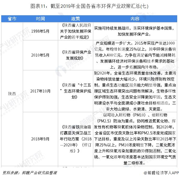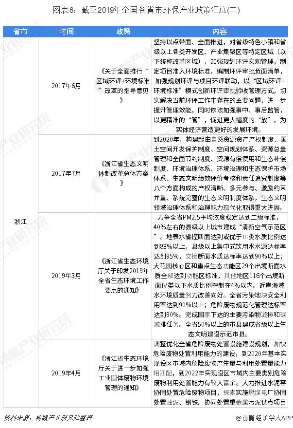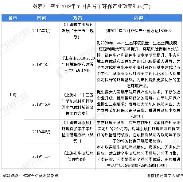 作为国家战略性重点产业,全国各级政府对本省市的环保产业也高度重视,纷纷积极推动节能减排和环境治理工作。如,2019年3月,江苏省推出《江苏省环境基础设施三年建设方案(2018-2020年)》;2017年7月,浙江省发布《浙江省生态文明体制改革总体方案》;2018年6月,北京发布《北京市节能减排及环境保护专项资金管理办法》;2017年10月,陕西省印发《陕西省“十三五”生态环境保护规划》等等。
