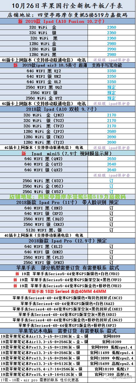 因苹果手表 表带特殊性 问价咨询 下列表格列出方便大家查询