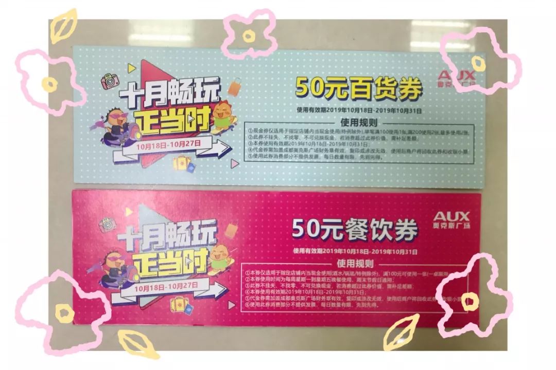 餐饮券使用楼层 4F 百货券使用楼层 2F