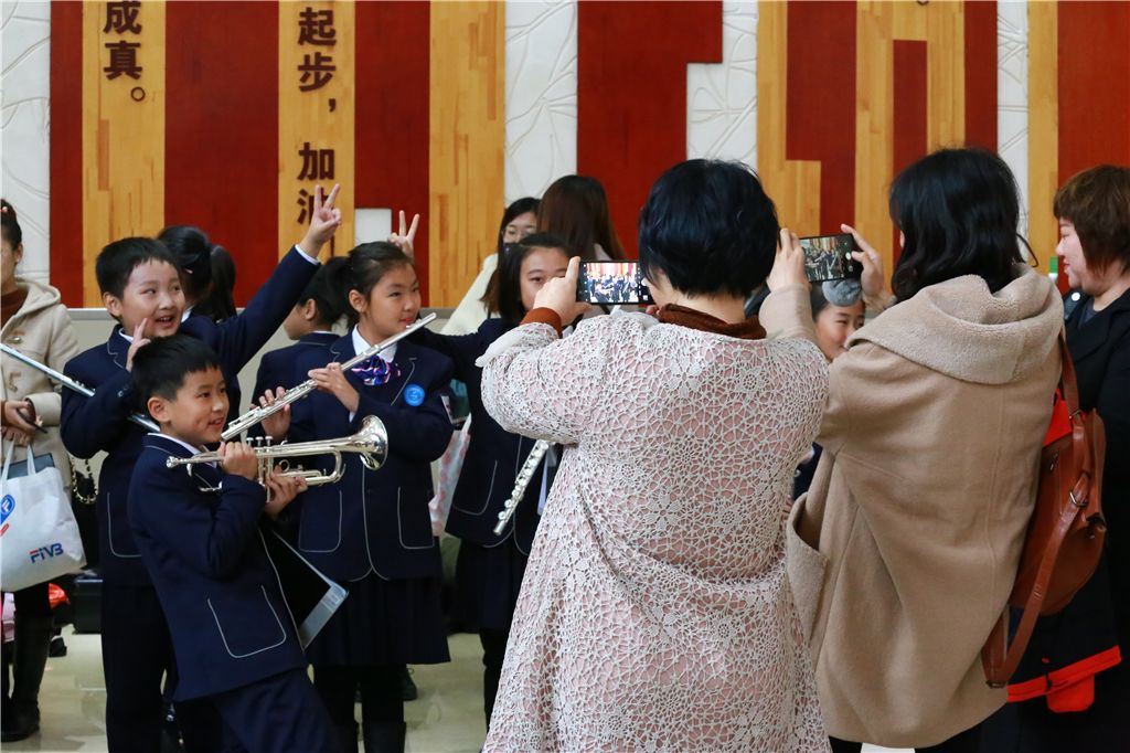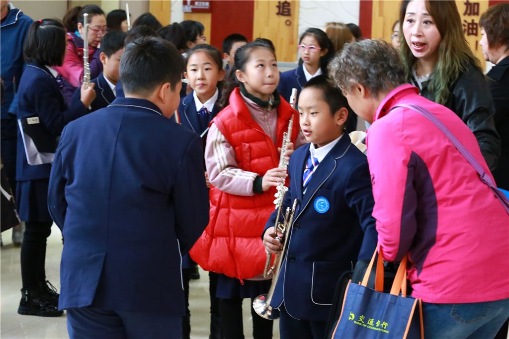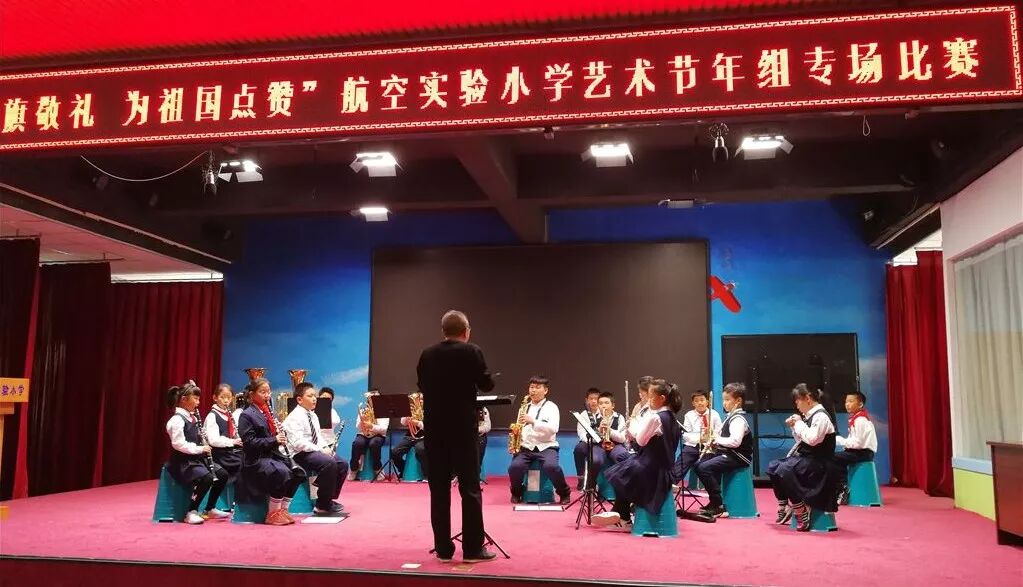 2019年10月25日上午,航空实验小学55名学生在学校领导和老师的带领下,乘车来到沈阳市南昌中学,参加了由沈阳市教育局主办的“2019年沈阳市中小学生艺术展演之管乐专场”。