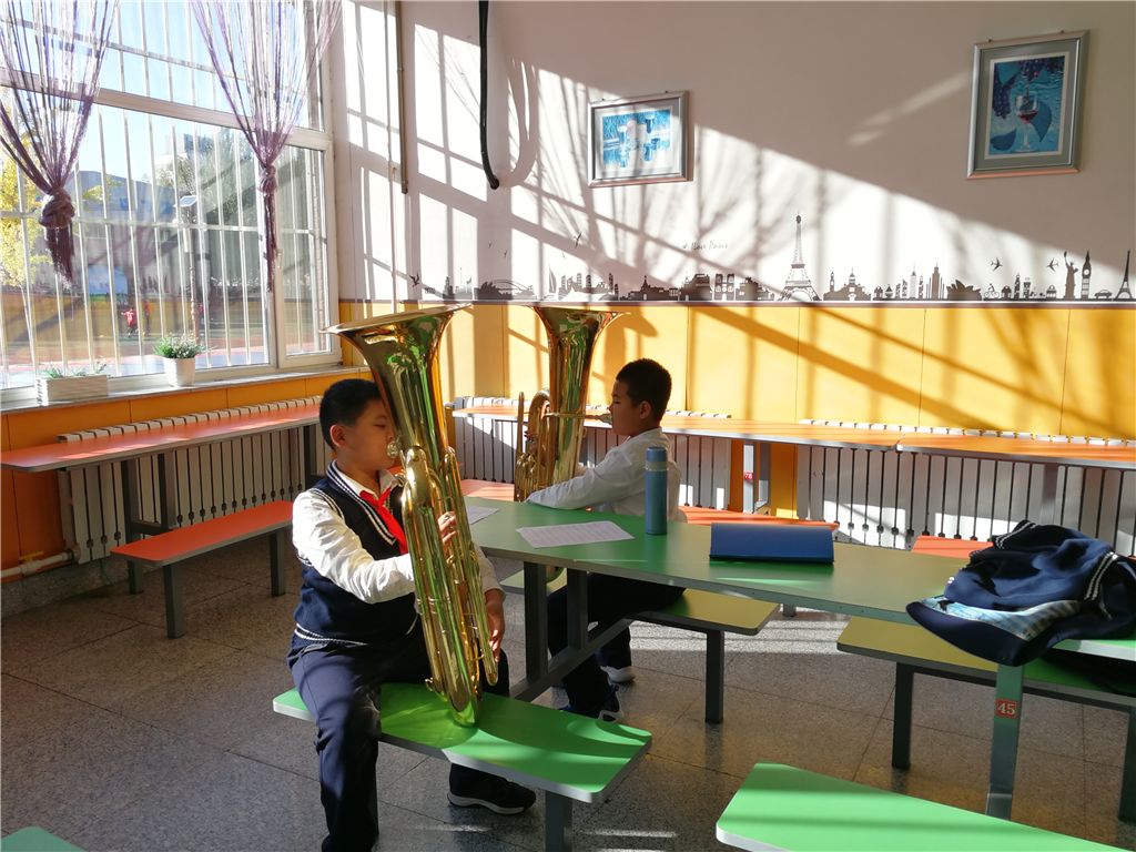 管乐队员们身着航空实验小学的新校服,在纪老师的指挥下完成了《奥克斯》和《对手》两首曲子的演奏,发挥出了连日来刻苦训练的水平。管乐队刚刚组建一年,队员们在短时间里跟随老师抓紧训练,嘴唇吹裂了也不叫苦,指甲磨破了也不叫累。辛苦的付出换来了今天的优异表现。