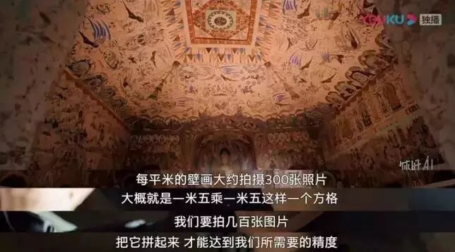 研究院的吴健团队为洞窟做数字化采集工作,它会将每一幅壁画都分成很多小份,传输到电脑上,再重新拼接,最后输出生成高清的数字档案。