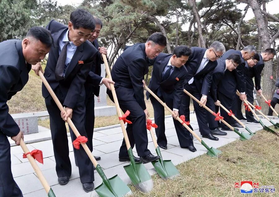 朝中社平壤10月25日电 中国人民志愿军烈士墓修缮工程开工仪式25日在平壤市兄弟山区举行。