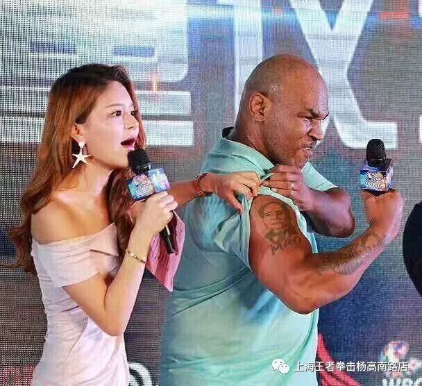 记得周薇一次采访泰森的活动中,泰森曾露出自己强壮的弘二头肌,烙印的黑色纹身,让周薇很好奇,身处娇手还触摸了下泰森的胳膊,摸了摸纹身,满足了自己的好奇心。