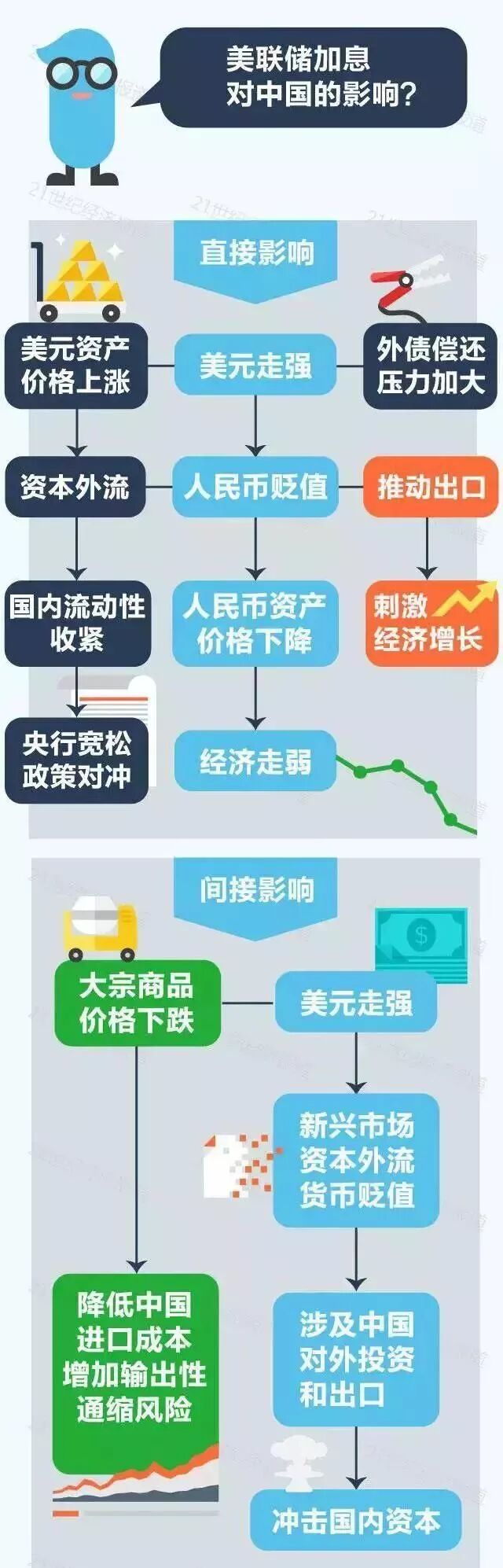 我们从逻辑上来看看,美联储加息,对中国会带来哪些直接影响和间接影响: