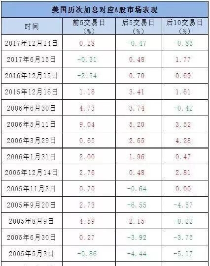 从历史数据来看,美联储加息对A股影响并不是十分明显,A股依然按自身规律运行。来看看历次美联储加息前后A股走势: