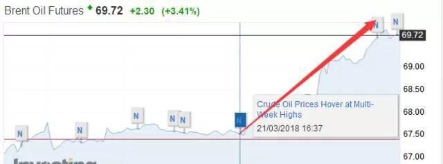 原油上涨幅度超过3%!重新接近70美元(和原油库存低于预期也有关系,叠加因素)