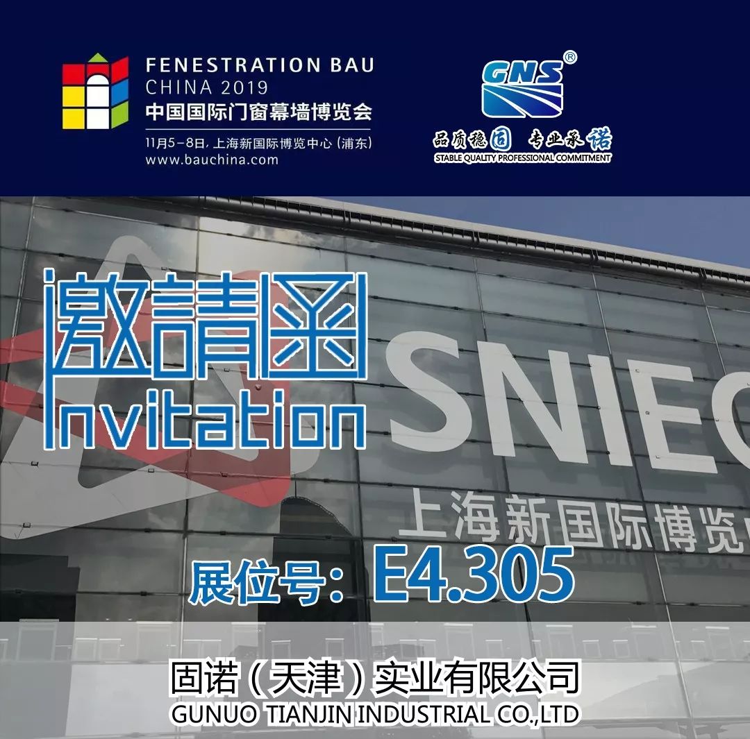 2019年11月5日-11月8日,一年一度门窗界的年度盛会即将在上海举办,固诺(天津)实业诚邀您参加2019中国国际门窗幕墙博览会,展位号:E4.305
