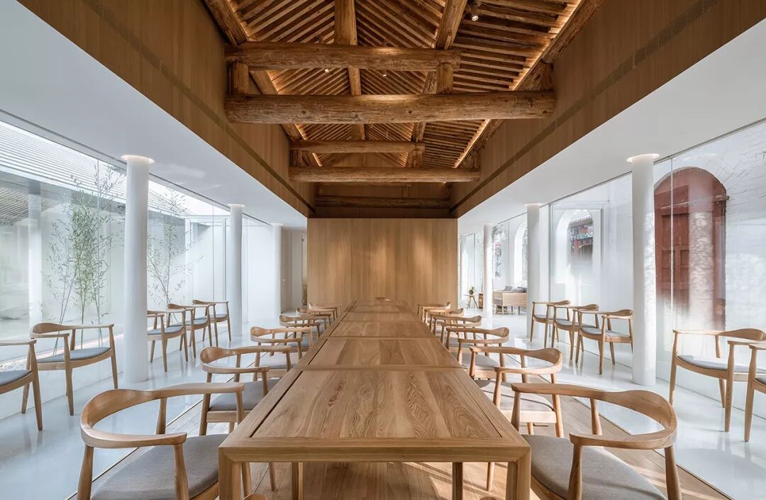 设计受到传统空间中“多重叠合院落”的启发,将原本的内合院改变为“三进院”,以此适应从公共到私密逐级过渡的功能使用模式,并利用院落的逐层过渡在喧闹的胡同街区之中营造出宁静、自然的诗意场景。