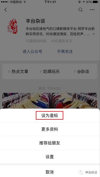 公众号名字右边的“☆”
