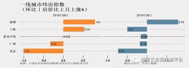 10月23日,中国社科院财经战略研究院发布《中国住房市场发展月度分析报告》(2019年9月)。《报告》显示:2019年9月,核心城市房价总体由涨转跌,一线城市房价以下跌为主,北京、上海跌幅略有扩大;准一线城市房价基本停止上涨,热点城市苏州热度减退;二线城市房价走势继续分化,补涨与回调并存。