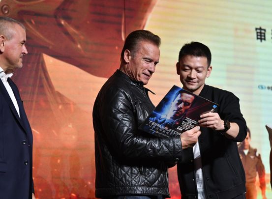 《终结者》系列对于世界科幻动作影史来说意义非凡,自1984年问世以来,很多中国电影都曾致敬和效仿过这一经典IP,阿诺·施瓦辛格也作为时代图腾,影响着一代又一代的中国电影人。凭借电影《流浪地球》创造中国科幻电影票房奇迹的导演郭帆就来到现场,郭帆透露自己一直是《终结者》和施瓦辛格的头号粉丝,正是年轻时看到了《终结者2:审判日》,才在心中埋下了科幻的种子,才有了20多年后的《流浪地球》。郭帆导演更是现场追星,向施瓦辛格送上了自己精心准备的《终结者2:审判日》原声黑胶唱片做礼物。导演蒂姆·米勒还打趣郭帆“是不是想要导演下一部《终结者》电影”,郭帆则回应:“那一定会像这面中国大鼓一样,充满非常多中国的传统特色”。
