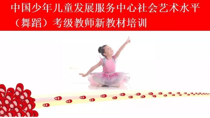 中国少年儿童发展服务中心社会艺术水平(舞蹈)考级教材教师培训班近年来已在北京、重庆、深圳、广东、江苏、福建、江西、湖南、山西、山东、陕西、安徽、河南、河北、甘肃、辽宁、内蒙古、云南、贵州、新疆、四川、南京、广州、西安、广西桂林等地先后开展了1507期。
