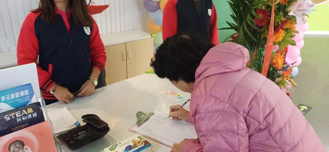 为了欢迎各位家长和小朋友的到来,优尼课西坝河校区装点一新。家长们早早来到活动现场,签到入场。