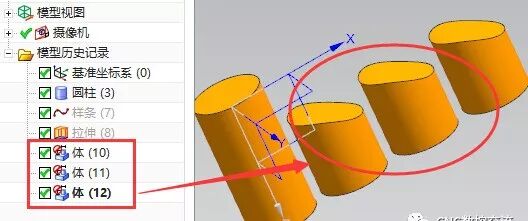 把修剪体删除后,原有实体恢复原来的圆柱体,而复制出来的实体还是原有的形态,这就是非参数的复制。