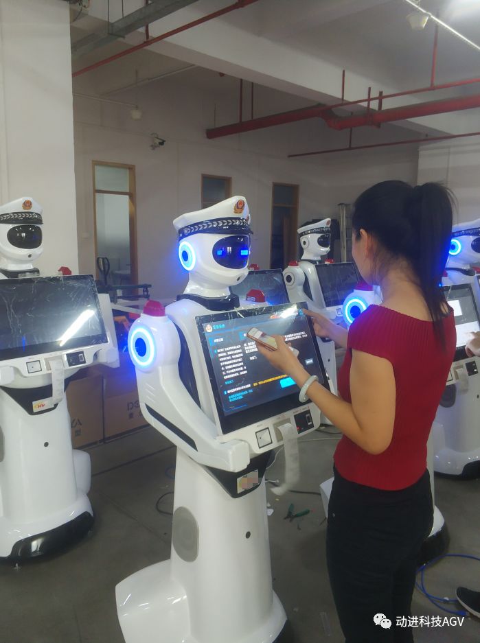 图/动进AGV车间10月警用机器人出厂前最后的调试