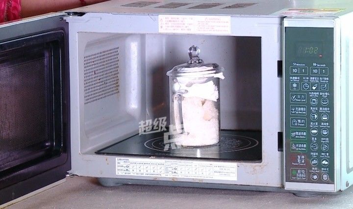 在玻璃杯里放1张餐巾纸,盖上盖子,放入微波炉中火微波1分钟。