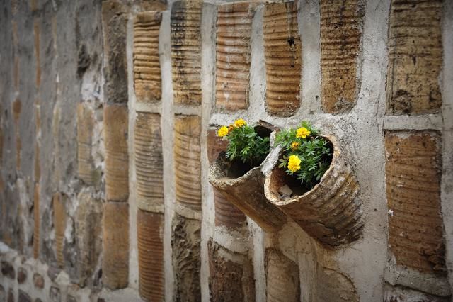 这是一道用“笼盔”砌成,横着砌如铜钱排列,竖着砌似巨竹拔节的墙体。“笼盔”是当地人的俗称,即陶瓷学上的“匣钵”,高度为30-60厘米,直径为20-40厘米,是填装陶瓷素坯像蒸笼一样的盔甲,具有保护瓷坯,防止落灰,避免窑火直接侵袭,保证瓷器受温均匀、窑变一致的作用。当地村民便把作废后的“笼盔”砌成墙体,不仅坚固耐用,更增加了房屋的美观性。