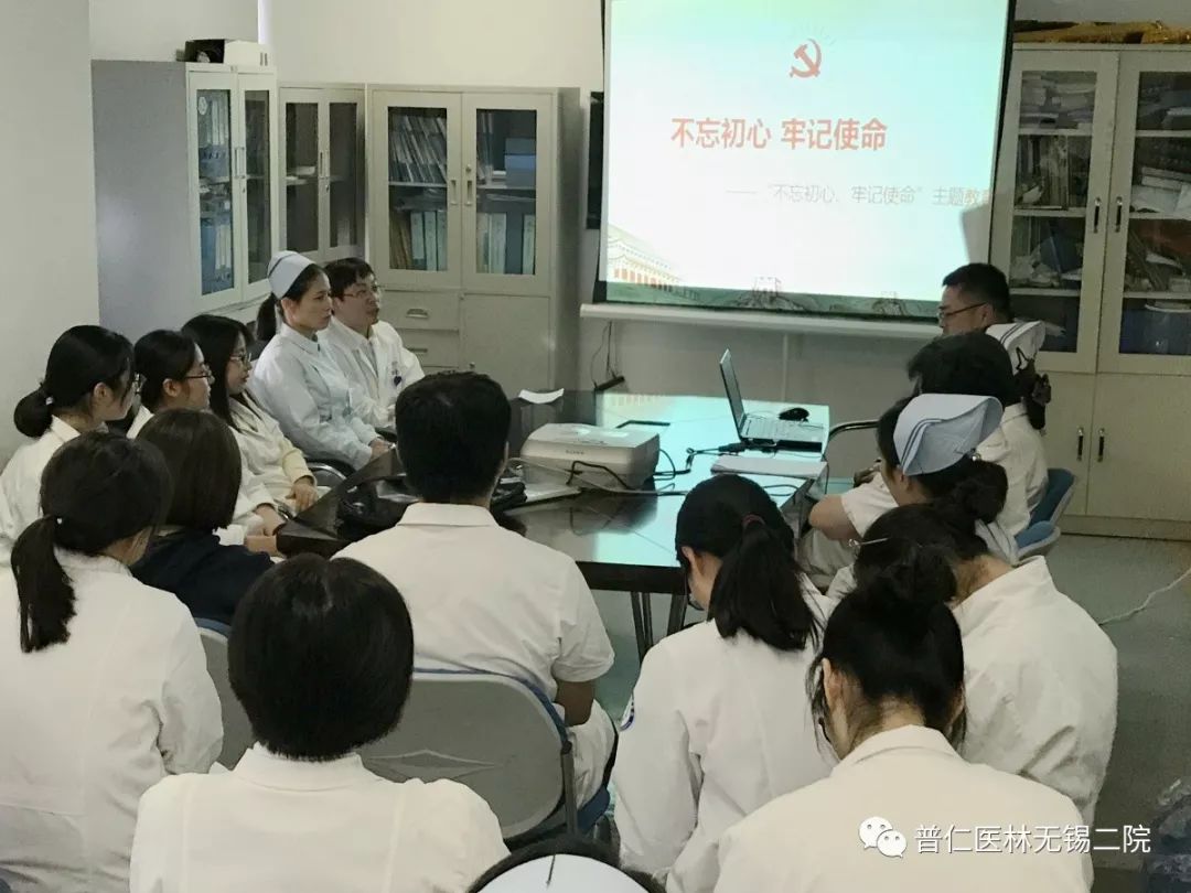 近日,无锡二院外科第一党支部开展“健康惠民、党员先行”主题党日活动,全体党员积极参加“不忘初心、牢记使命”主题教育,扎实推进工作进展,以党员的担当和先锋模范作用为百姓健康保驾护航。