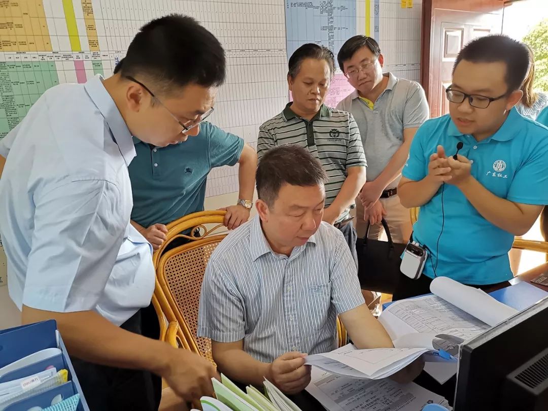 ▲卓志强一行察看梅州市金山社工站民政对象专业服务归档情况,对社工站详细专业的服务记录表示满意