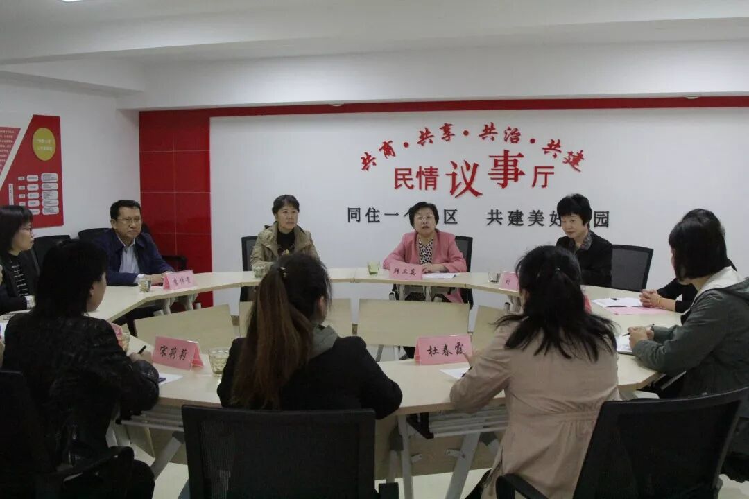 韩卫英部长实地察看了华黎社区党群服务中心,调研座谈了北坦街道各社区基本情况、基层妇联工作开展情况,并与各社区女书记进行了深入交流与探讨,了解大家在基层工作中存在的困难,并为大家发放征求意见表、学习教育书籍和光盘。