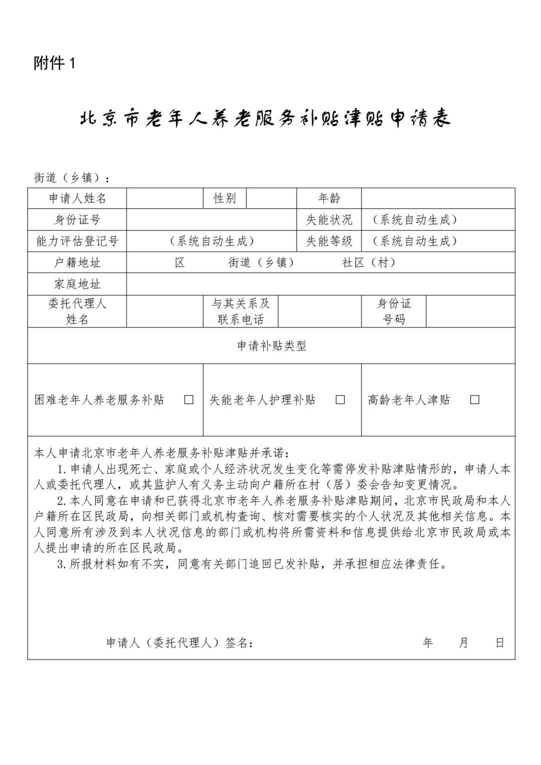 北京市民政局关于印发《北京市老年人养老服务补贴津贴管理实施办法》的通知