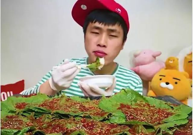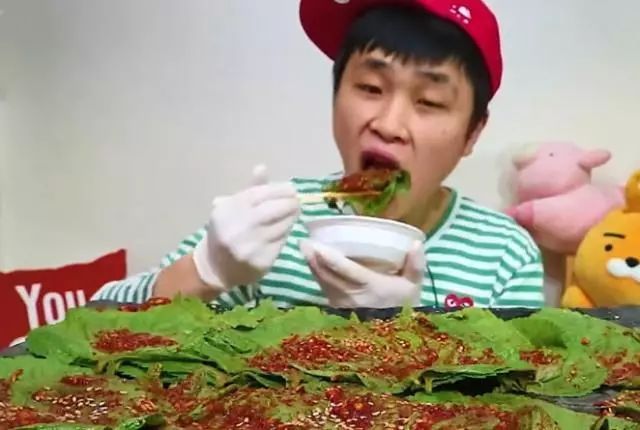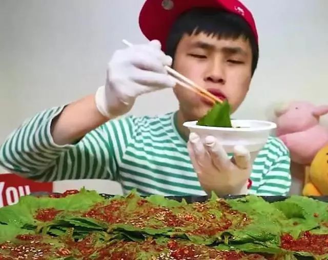 这位网红小哥哥是个韩国人,很多女生都非常喜欢韩国小哥哥,因为韩国的小哥哥相貌非常的帅气。从照片上可以看到小哥哥面前的摆着满满地一桌的野叶片,上面还有很多辣椒酱,还有一碗饭,准备好后,就开始吃了,吃的速度也非常快,嘴里塞得满满的。