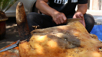 再到出锅上桌之前,还要蒸制四十五分钟,让整个牛头在“酣睡”中熟透,囤积整个烹饪过程中的汁液、汤料……整个牛头,只有味浓肉鲜,才能够达到它的最好赏味期。