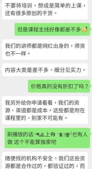 通过扫描电梯广告上的二维码,在另一家网红培训机构上填写了报名资料。很快,有一位姓张的老师通过了聊天形式进行了回访,表示要多了解一下学员的学习意向和自身特点。