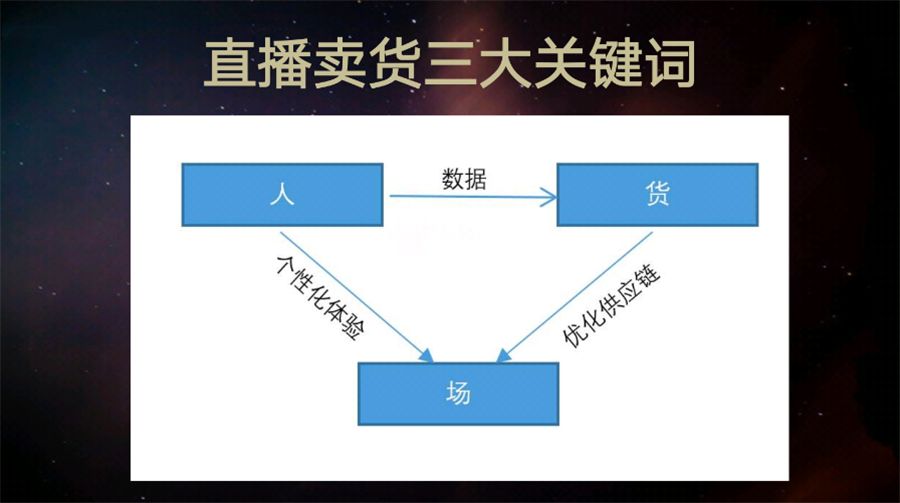 尽管如此,丁老师仍指出“人、货、场”依然是传统服装产业的核心要素,只不过“人”从消费者升级到了用户,“货”从标准规格产品升级到个性化产品、“场”从卖场升级到场景。直播卖货这三大关键不可忽视。