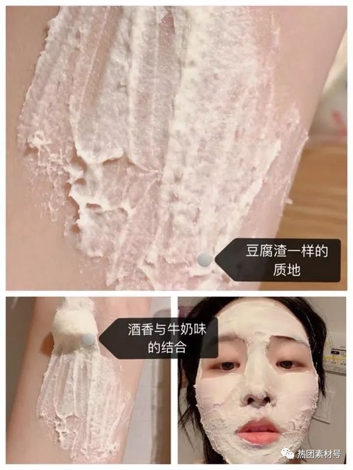 豆腐渣的质地,有一股淡淡的米酒香、不刺鼻。超级顺滑好推开,质地很柔嫩,每次挤出适量,均匀涂抹在脸上,等待15~20分钟后洗掉即可。