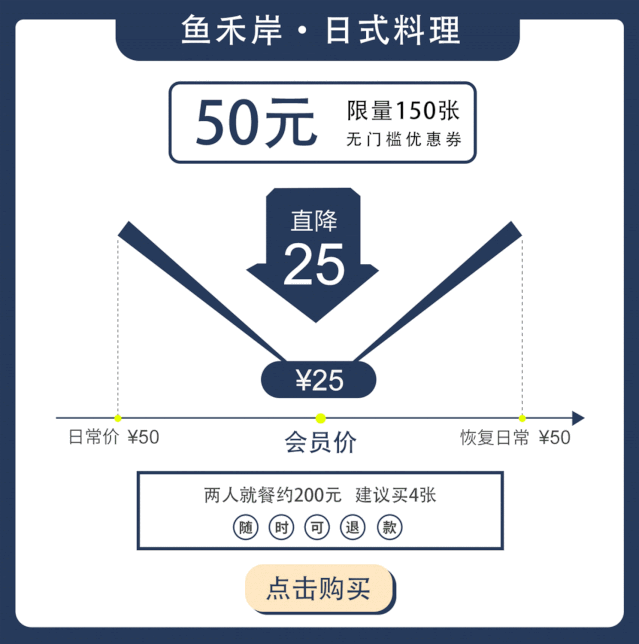 新店带着「50元无门槛代金券」走来了代金券鱼禾岸所有门店可叠加通用的哦