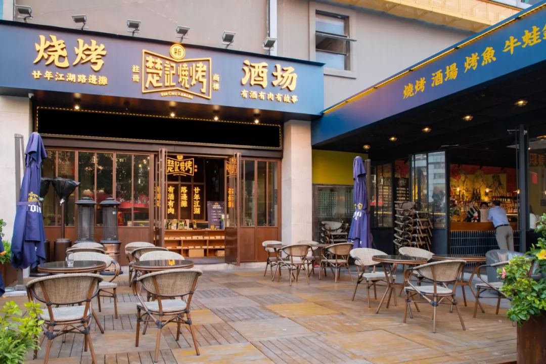 烧烤届的“喜来登”名不虚传色调是食夜蓝和落日黄的结合