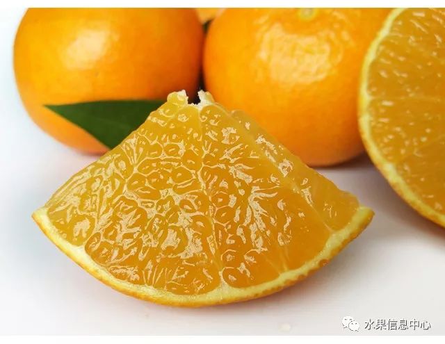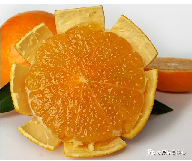 从这张水果剖面图上我们已经开始感受到爱媛38的魅力:无籽、橘络少、皮薄、果肉细腻透亮。