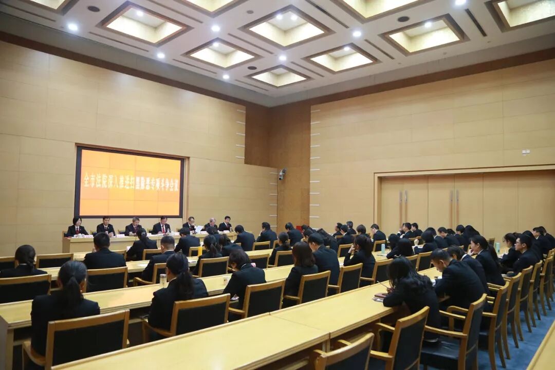 市高级法院全体党组成员、执行局局长、各相关部门负责人及刑庭、扫黑办全体人员,全市三级法院党组书记、院长、全体党组成员及对应庭室、部门人员参会。