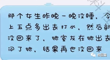 据了解,事发后,安全办公室在学校的官方网站上发布了简报。通知说,110校园接到报警,学生们掉进了大楼。接到警察后,学校立即启动应急预案处理,并及时向120和110报警。120.参加检查后,发现该名学生没有生命迹象,公安机关正在进一步核实和调查有关情况。楼宇倒塌事件在互联网上张贴后,引起了社会人士的广泛关注。有网友透露,女孩早上五点出外取水,早上被发现下楼后才回来。