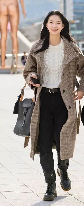 外套在进入秋天以后,就成了很多人都比较喜欢的单品了,这次的小姐姐也是都选择了外套来搭配,上面的小姐姐选择了一件灰色的千鸟格大衣,大衣的设计比较简单,里面则是搭配了白色的毛衣,以及黑色的裤子,黑色跟白色的搭配,在我们的生活中是最为常见的,在你不会搭配衣服的时候,就可以选择经典的黑白色了,这里鞋子的颜色同样是选择了黑色,让腿长得到很好的延续,让他看上去可以更袖长了很多有木有。