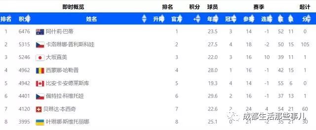 由于没有绝对的霸主,世界第一的积分并不高,暂时排名第一的巴蒂的积分只有6476分,与小威、莎拉波娃争后时积分破万是不能比的。但是,现在的奖金高呀!网球作为职业运动,钱拿到手里才是正理。