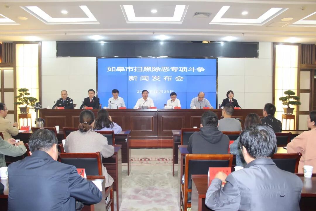 25日,如皋市在市行政中心第三会议室举行扫黑除恶专项斗争新闻发布会。