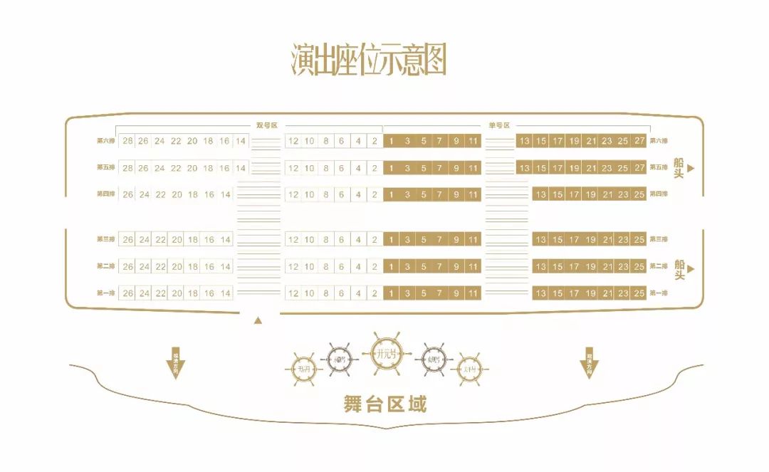登船地点:上船码头为北码头,下船码头为胡店码头;价格政策:①至尊区(开元号1到6排1-12号),限时优惠价格618元/张;②贵宾区(开元号1至4排13-26号、5至6排13-28号),限时优惠价格518元/张;③A区(永徽号、贞观号),限时优惠价格418元/张;④B区(天后号、太平号),限时优惠价格318元/张;(以上价格均含景区入园门票)