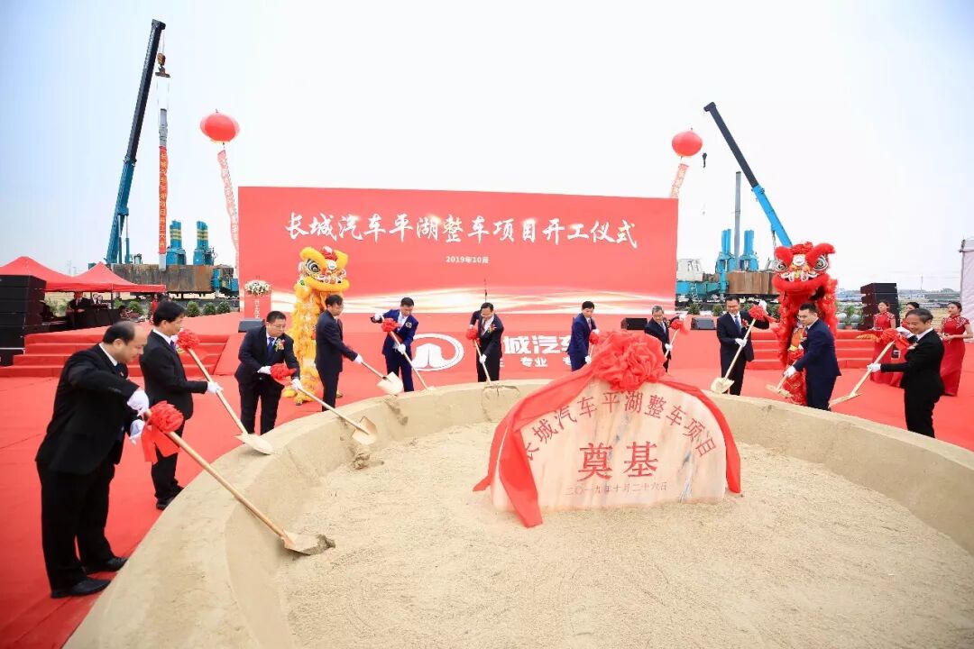2019年10月26日浙江省平湖市长城汽车平湖整车项目开工仪式在隆重举行,长城汽车总投资约110亿元项目涵盖整车生产基地与平湖研发中心,总占地约1200亩,计划年产能10万辆。,建成后主要生产长城汽车旗下哈弗品牌及新能源系列产品。