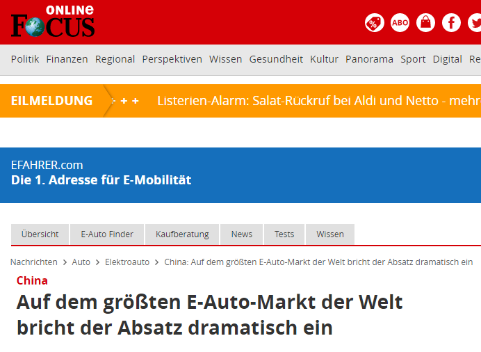 很长一段时间以来,中国的电动汽车销售额一直呈昂然攀升之势,但最近一个季度,需求似乎出现了停滞。与此同时,德国的电动汽车市场保持增长态势。德媒《焦点》周刊对此撰文报道,现全文编译如下:
