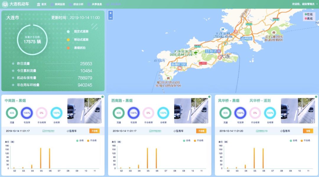 大连市生态环境事务服务中心 工作人员:这套系统实现了在不影响机动车正常行驶的情况下,通过前端遥感监测设备,全天24小时不间断对机动车尾气排放状况进行快速检测,并利用计算机技术和网络传输技术,对车辆的牌照信息和检测数据进行识别,实时传输至远端数据管理平台进行统计分析,大大提升了大连市机动车排气污染检测智能化水平。