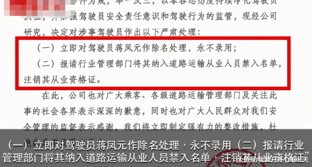 驾驶员蒋某发现之后要求货车驾驶员停车,但是货车驾驶员并没有减速停车,而大客车的驾驶员采取逼停的方式,让货车停下,随后成都市汽车运输公司对于蒋某进行了处理,而公司决定对蒋某作出除名,永不录用的决定。