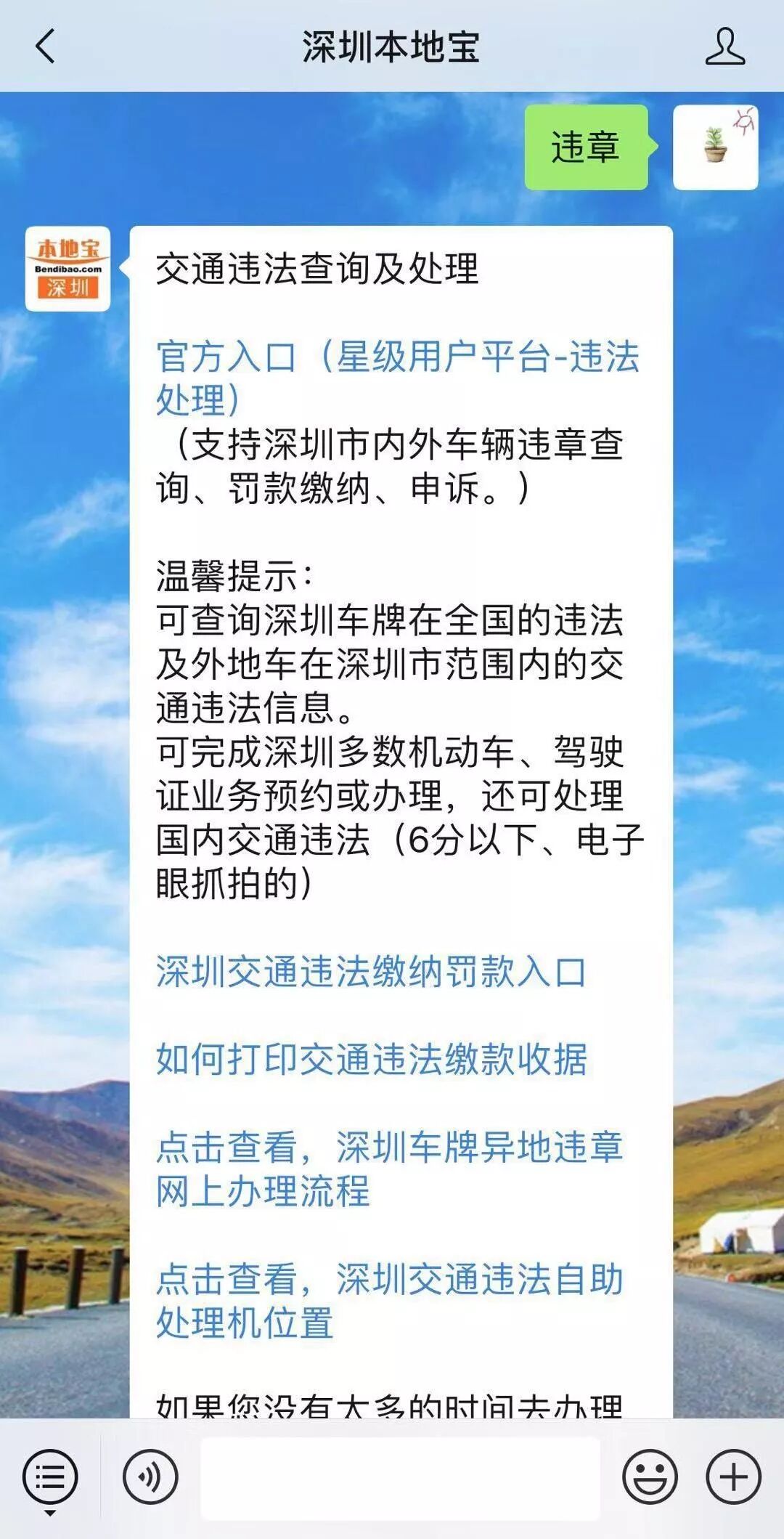 对话框发送“违章”