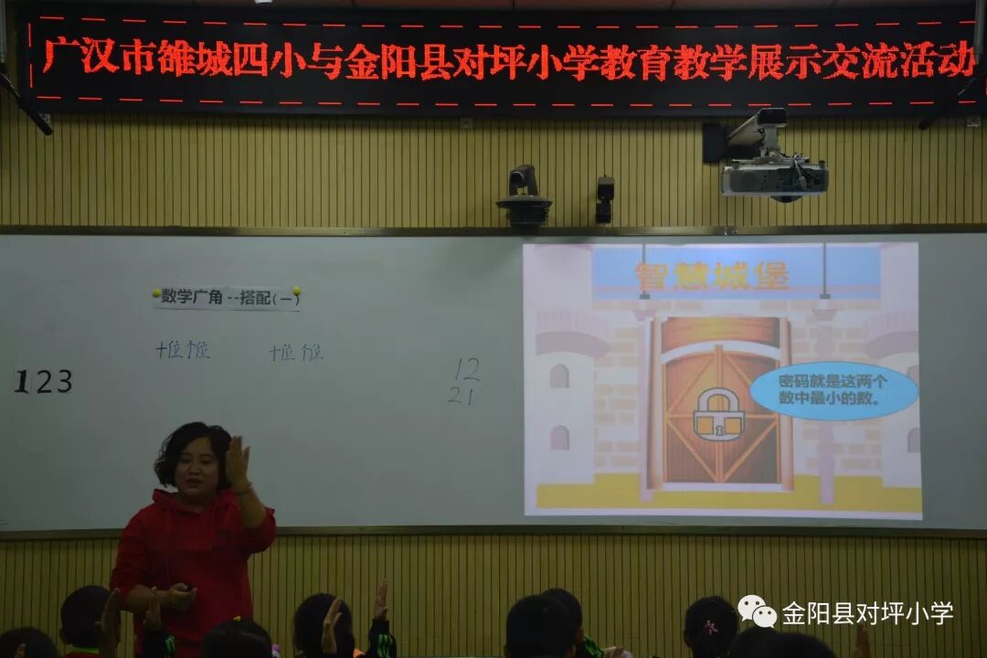 对坪小学分管教育教学副校长赵晓红、雒城四小分管教育教学冉副校长、韩主任及对坪小学教导处、教科室、语数骨干教师参加了此次广汉市雒城四小与金阳县对坪小学教育教学展示交流活动。